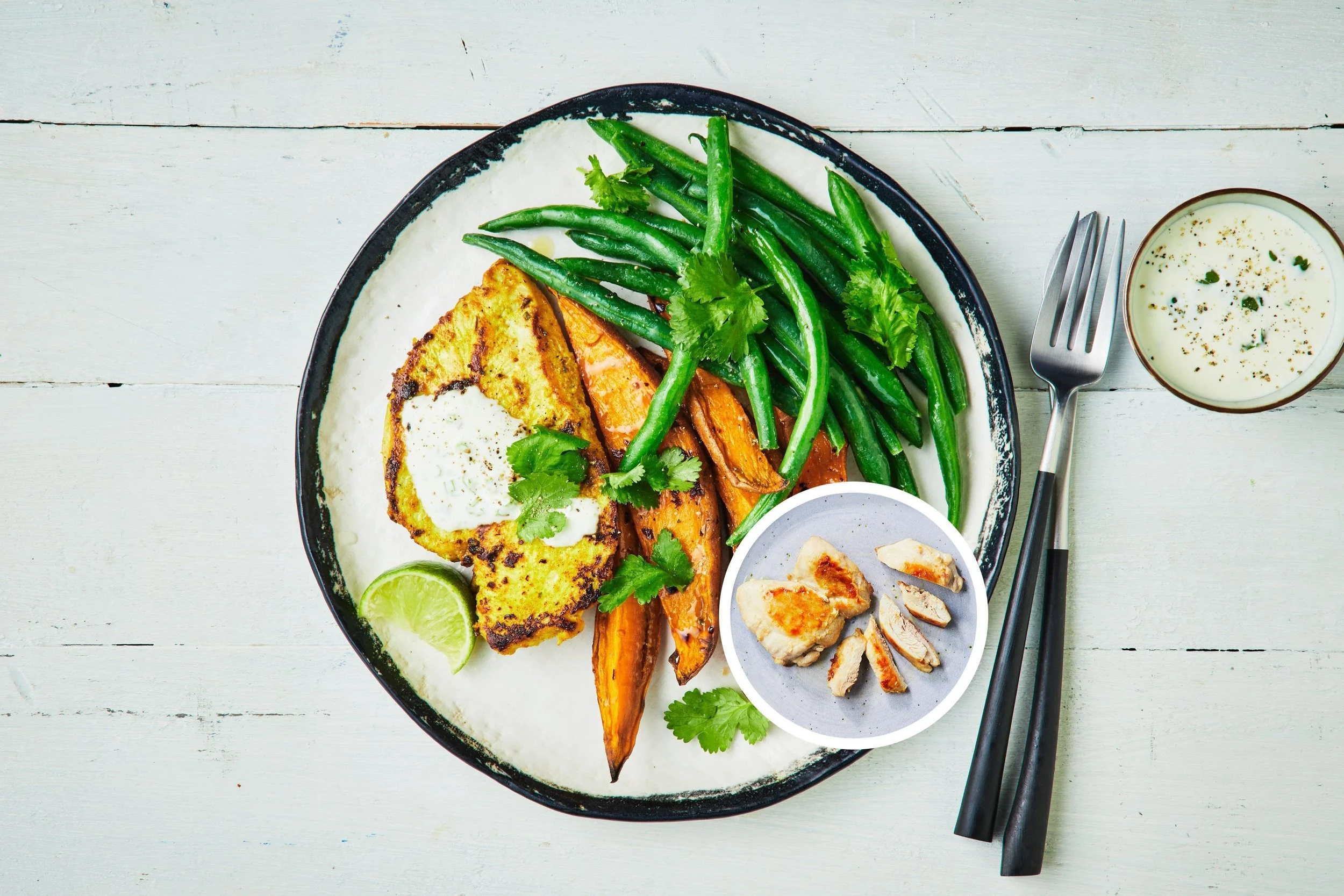 Curried Yoghurt Chicken Breast with Sweet Potato, Lime and Coriander